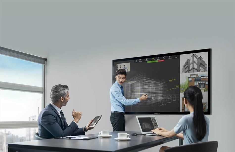MAXHUBX3会议平板,全新一代企业高效办公设备,覆盖了书写、展示、协同三大会议场景中需要的功能,