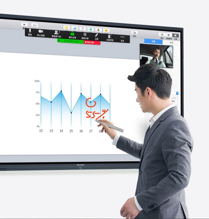 让你能在MAXHUB超大屏幕上同时清晰看到视频画面及共享内容,